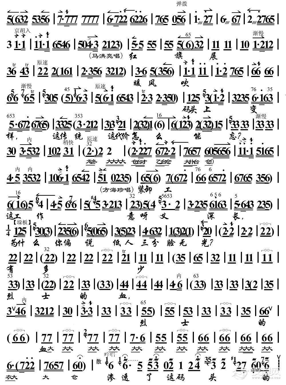 戏曲曲谱你要把解放前后两对照(《海港》马洪亮唱段、琴谱)
