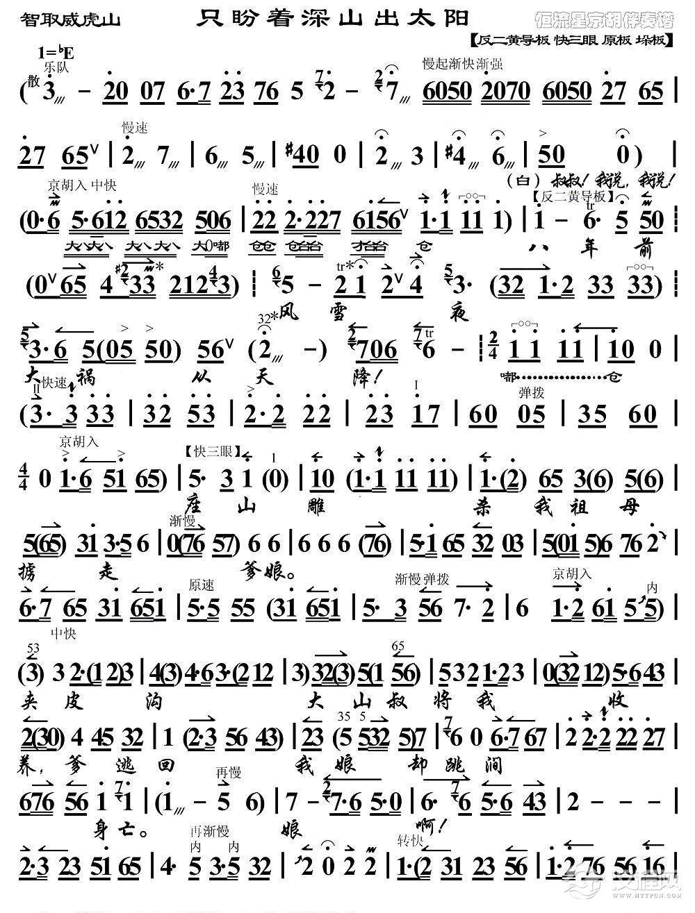 戏曲曲谱管叫山河换新装(《智取威虎山》选段、琴谱)