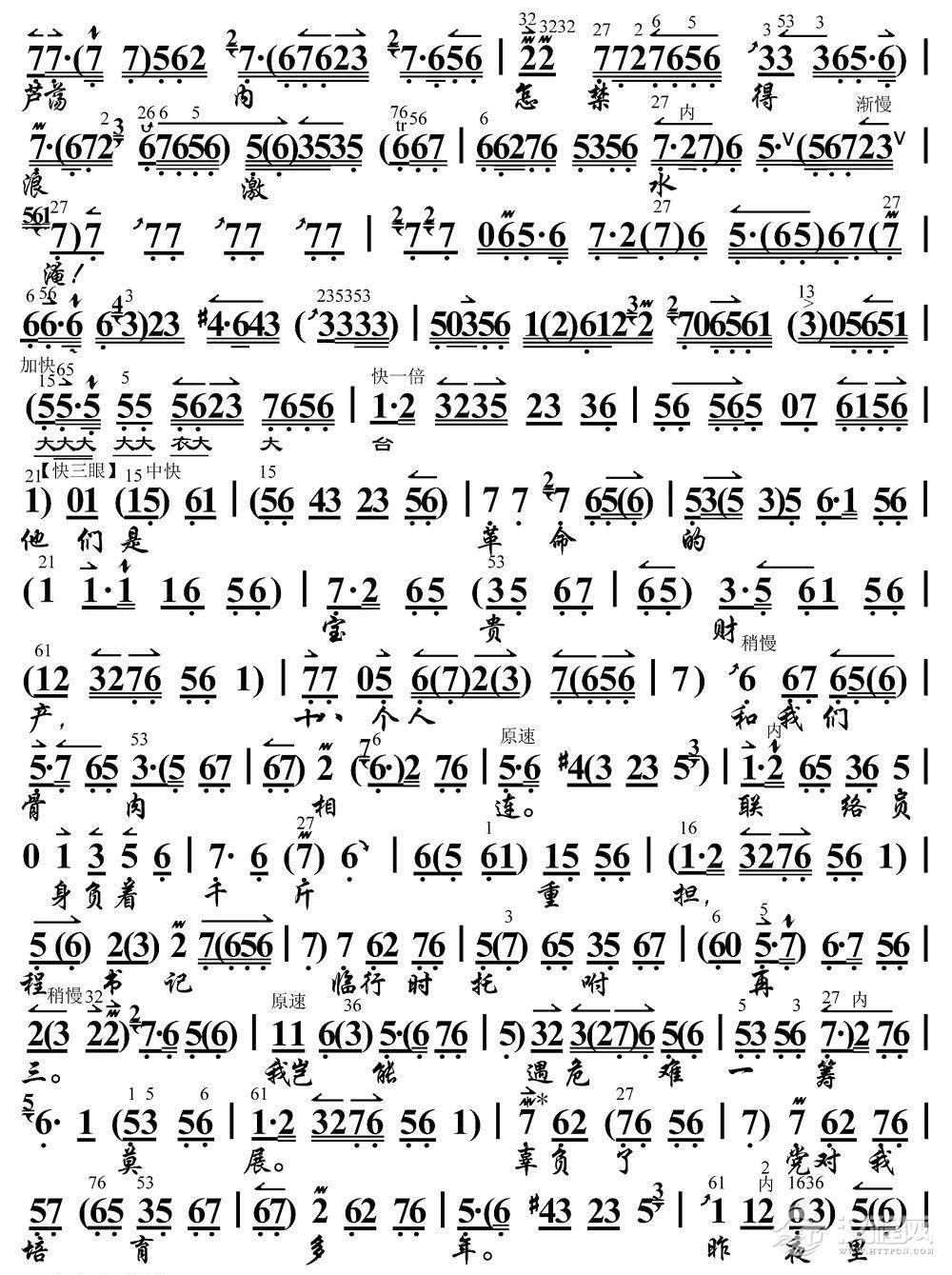 戏曲曲谱无产者一生奋战求解放(《红灯记》李玉和唱段、琴谱)