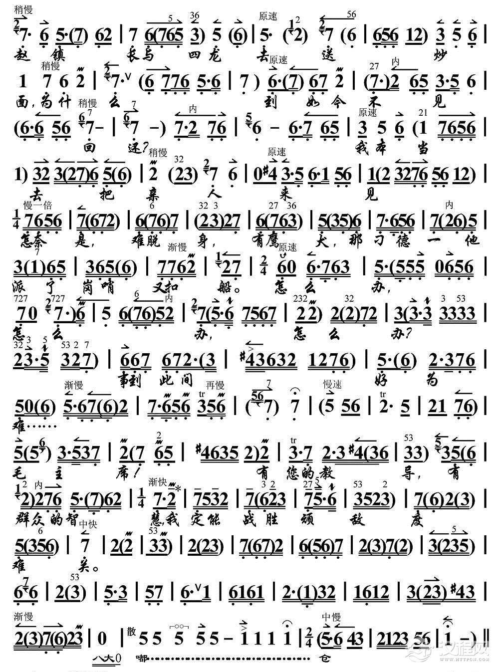 戏曲曲谱毛泽东思想东风传送(《海港》方海珍唱段、琴谱)