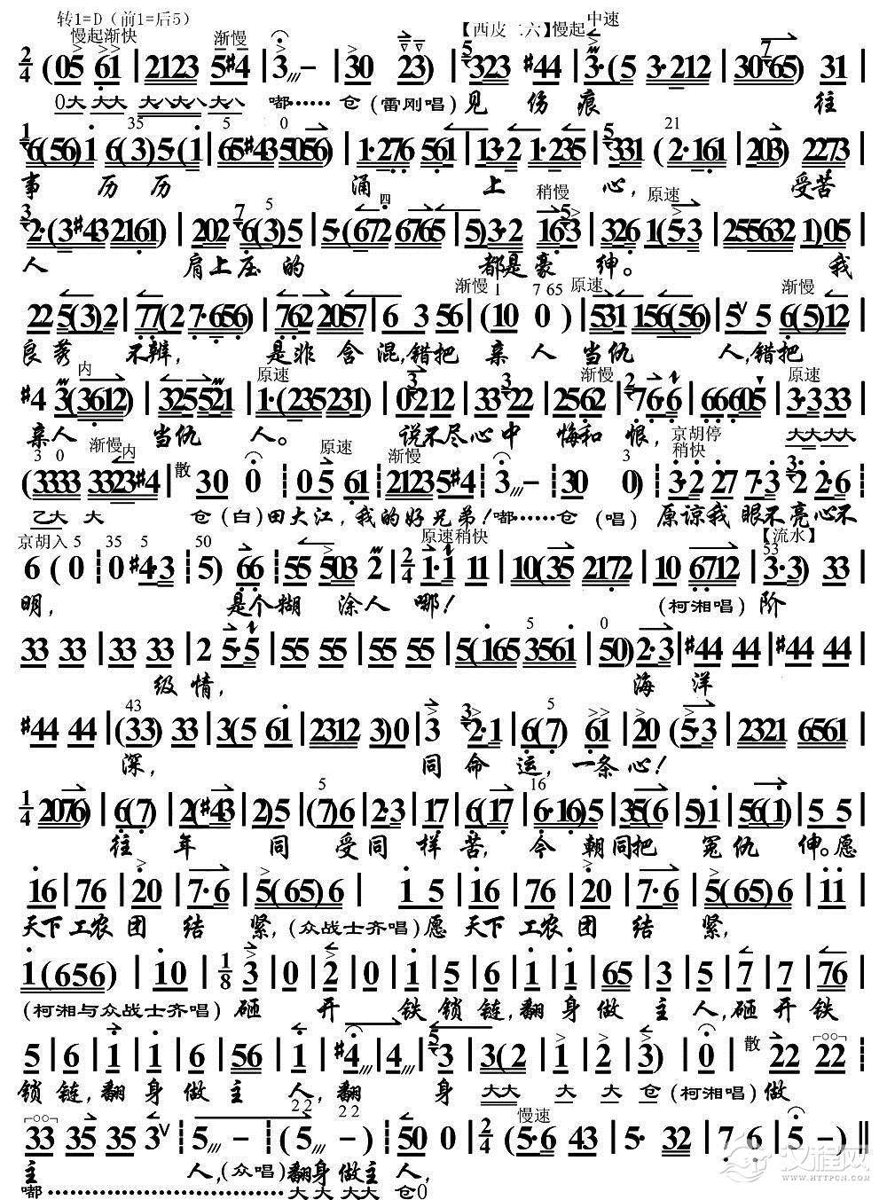 戏曲曲谱闹革命靠的是阶级力量(《红色娘子军》选段、琴谱)