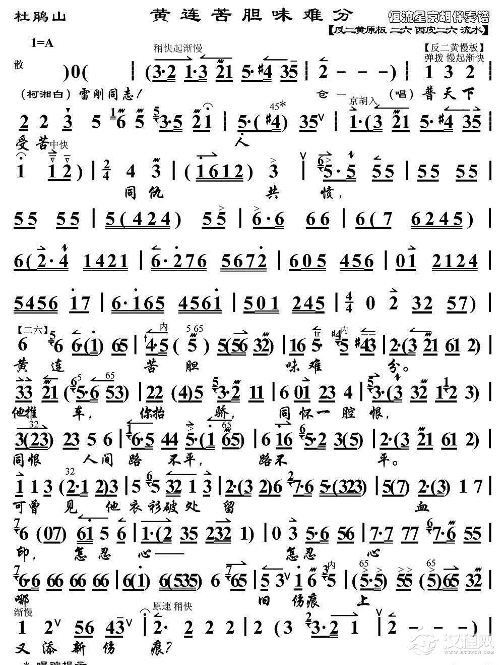 戏曲曲谱血的教训(《杜鹃山》柯湘唱段、琴谱)