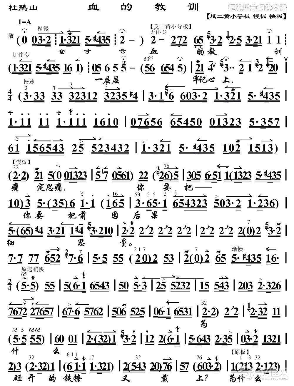 戏曲曲谱血债定要血来还(《奇袭白虎团》选段、琴谱)