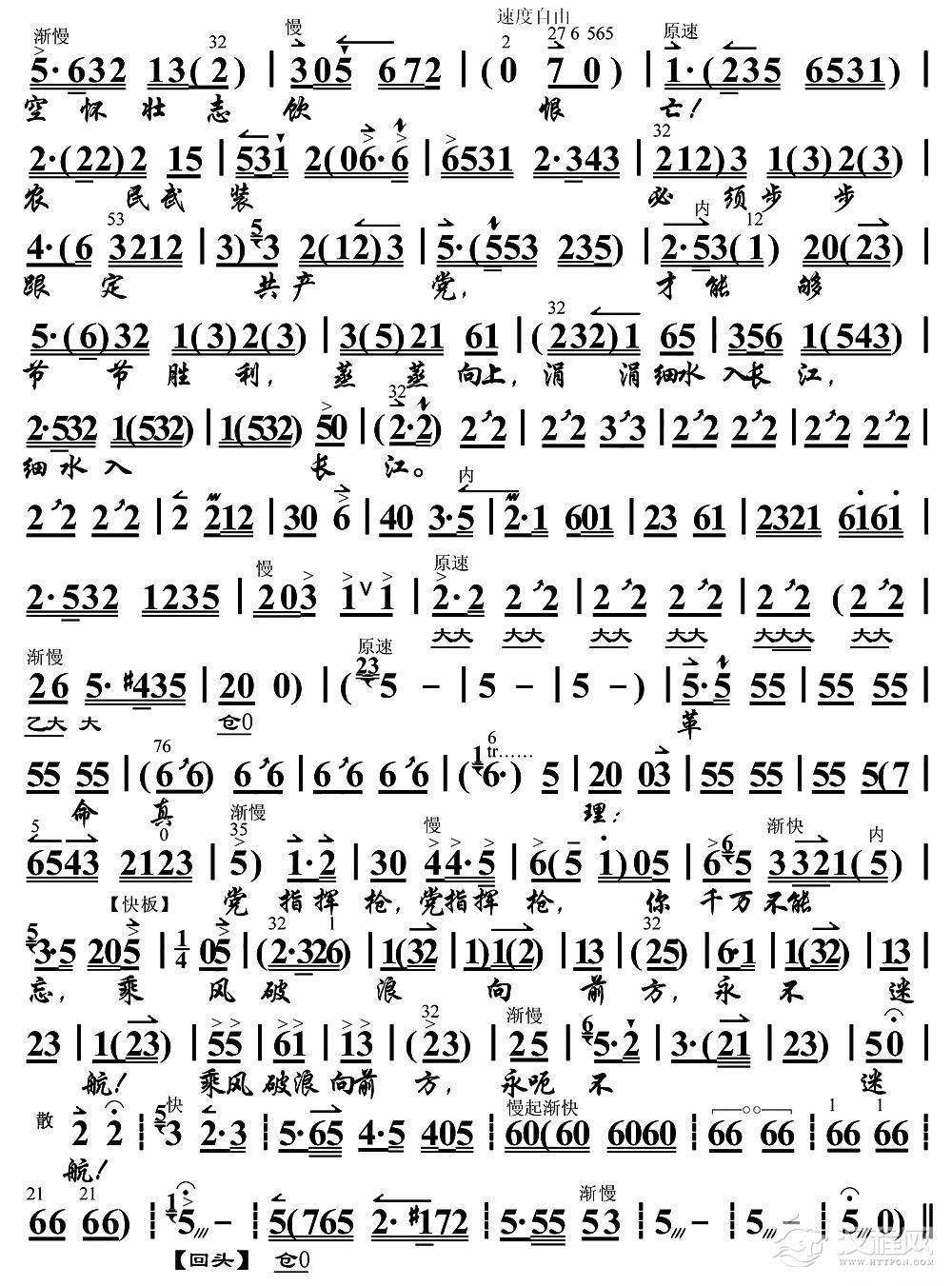 戏曲曲谱送女把军参(《红色娘子军》选段、琴谱)