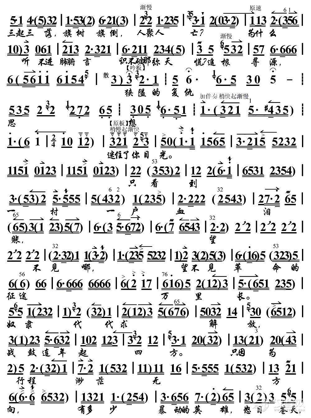戏曲曲谱闹革命靠的是阶级力量(《红色娘子军》选段、琴谱)