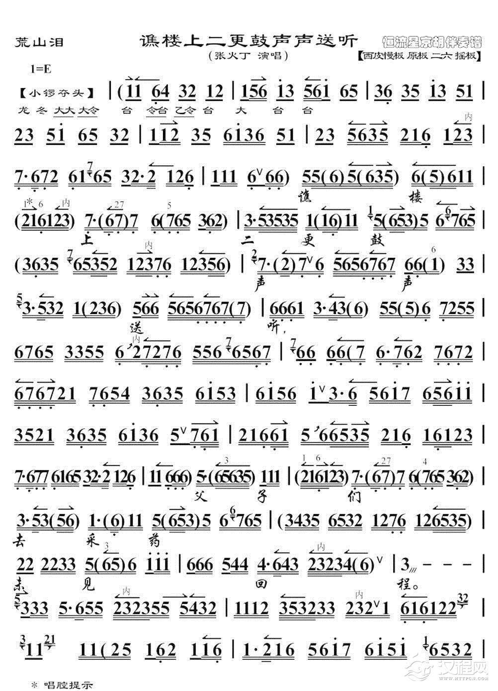 谯楼上二更鼓声声送听(《荒山泪》选段、琴谱 张火丁演唱)