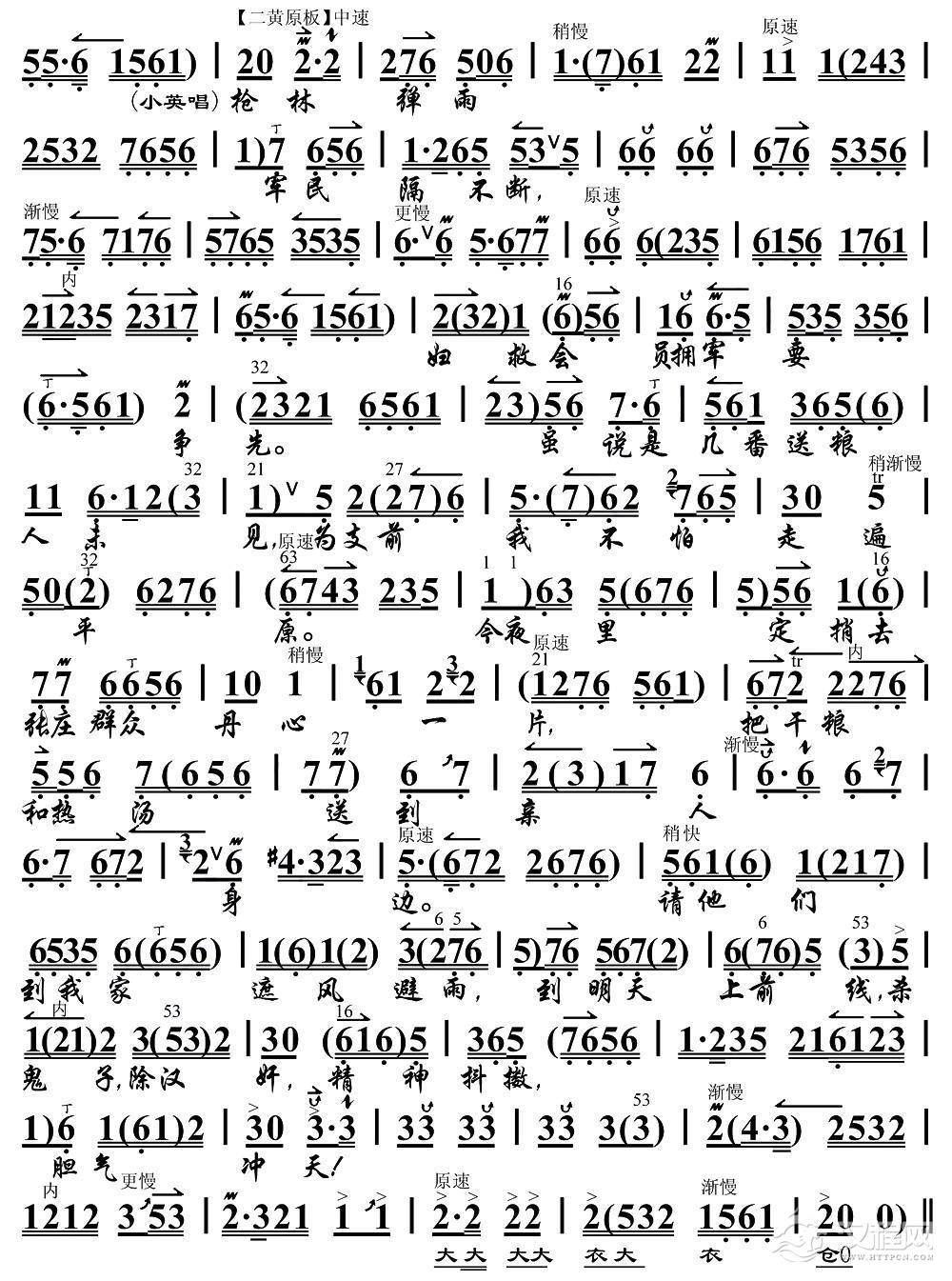 戏曲曲谱送女把军参(《红色娘子军》选段、琴谱)