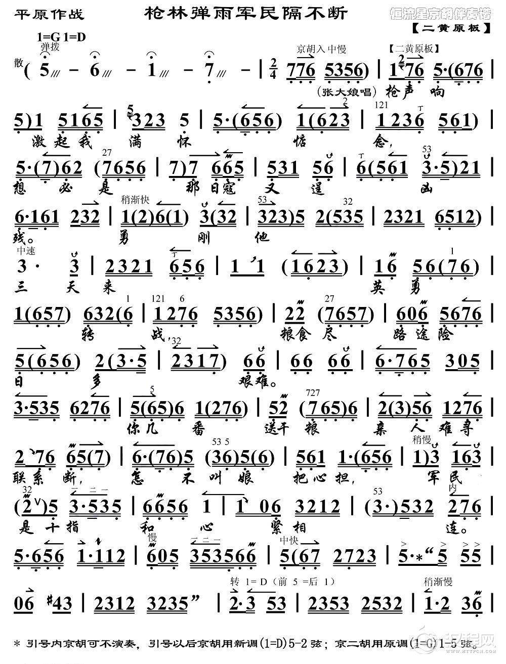 戏曲曲谱抗日的堡垒村稳如山(《平原作战》选段、琴谱)