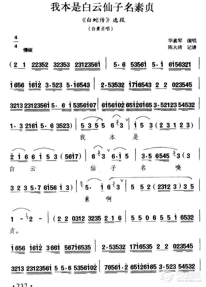 戏曲曲谱白茫茫雾腾腾云层滚滚(《牛郎织女》选段)