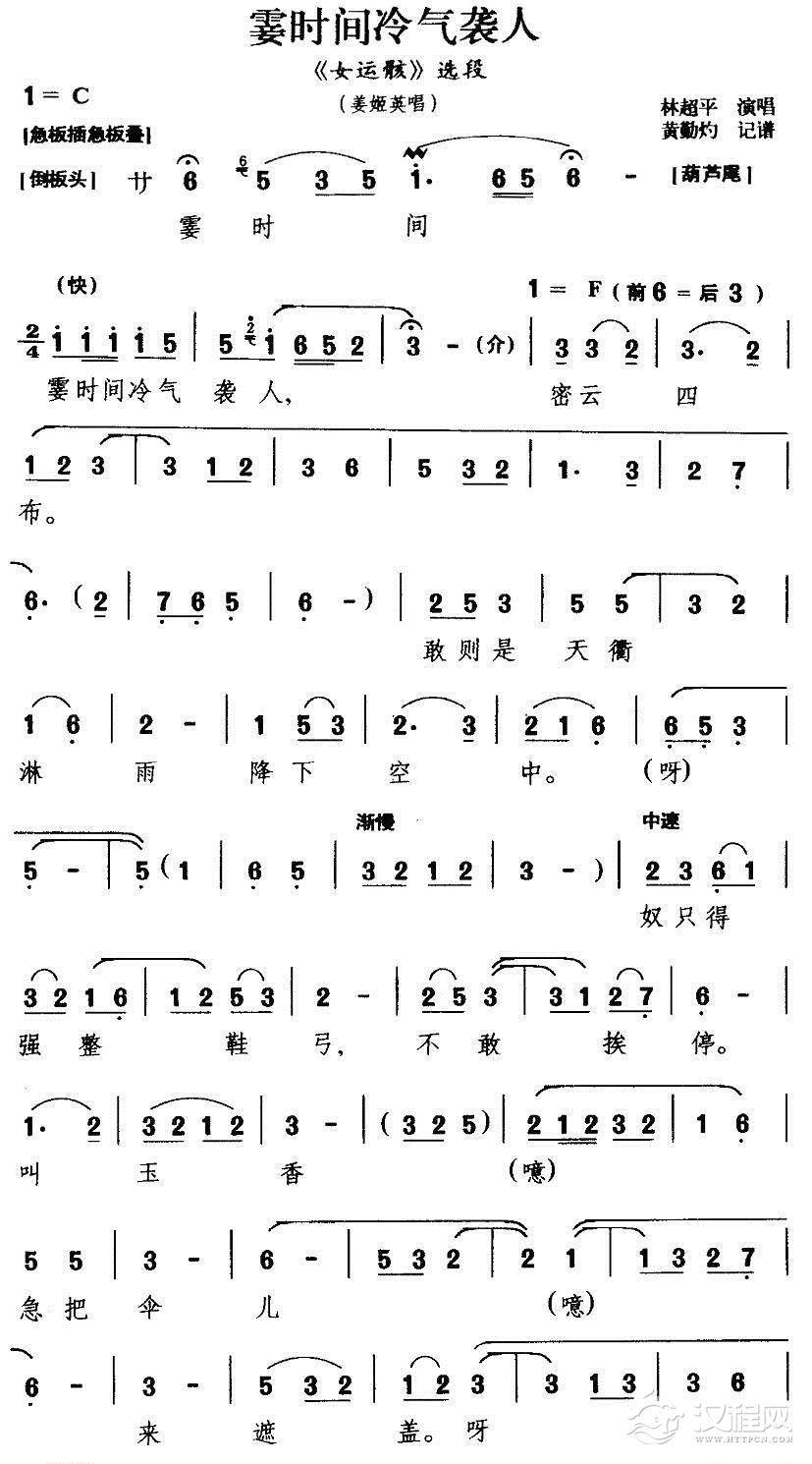 戏曲曲谱[扬剧] 老夫人请息怒听红娘说根由(《西厢记》红娘唱段)
