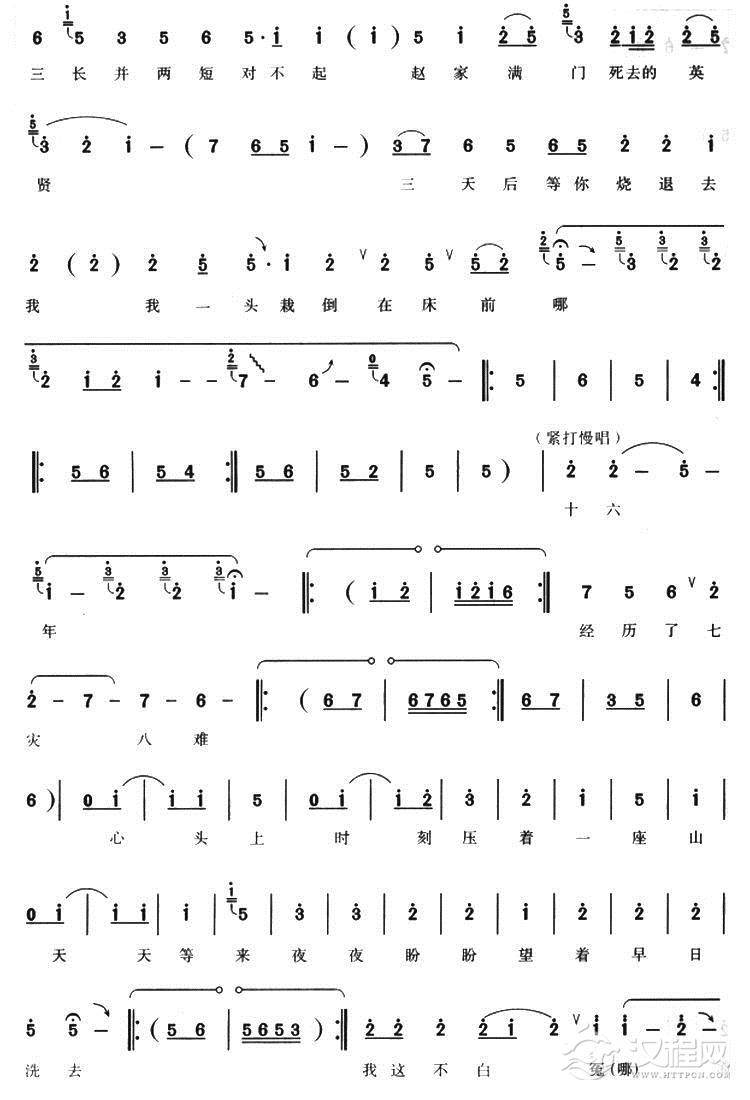 戏曲曲谱冷宫深锁重重怨(《程婴救孤》选段)