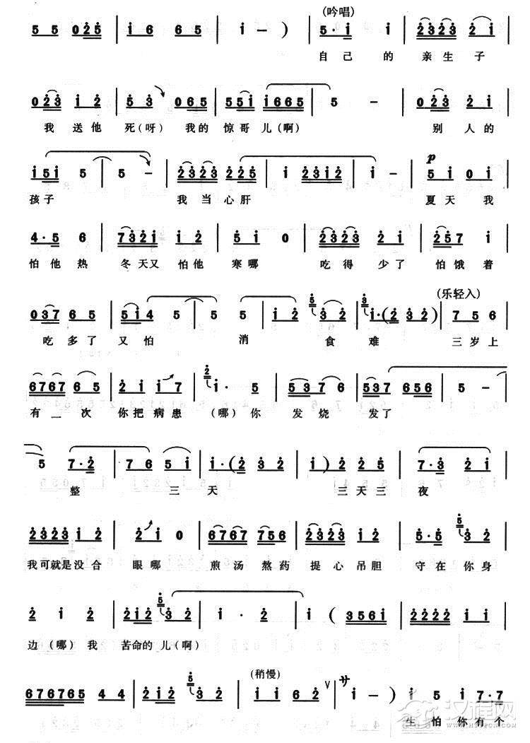 戏曲曲谱如今我儿遭祸殃(《洪湖赤卫队》选段)
