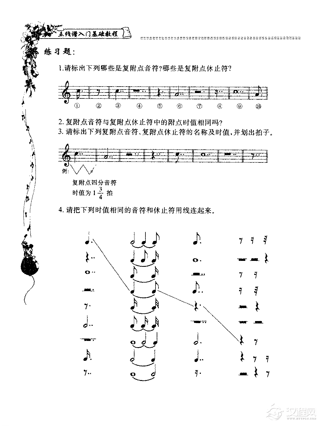 音乐知识五线谱入门基础教程【练习题答案】