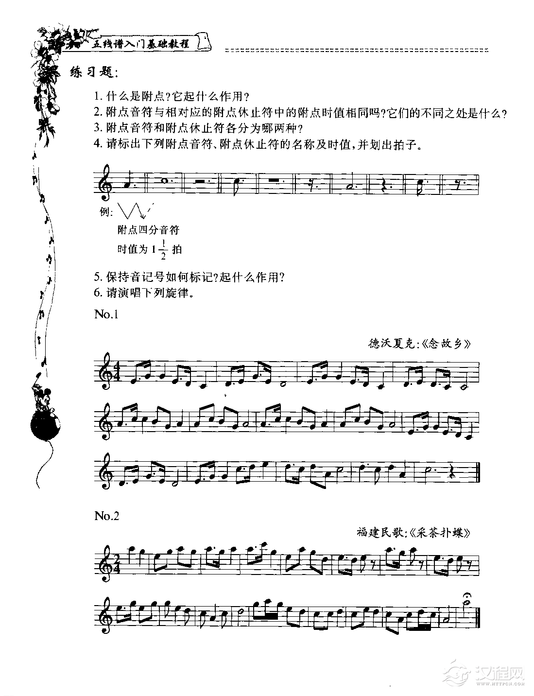 音乐知识五线谱入门基础教程【练习题答案】