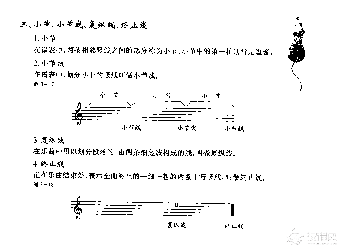 五线谱入门基础教程【第三课 五线谱(三、小节、小节线、复纵线、终止线)】音乐小知识