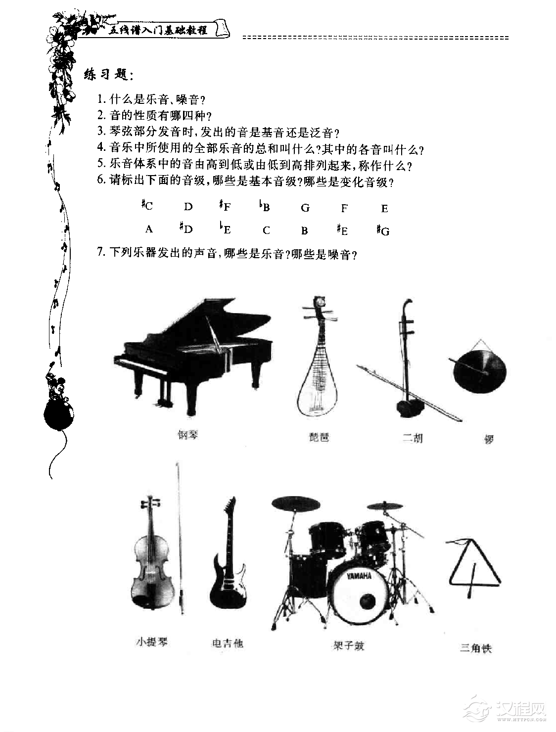 音乐知识五线谱入门基础教程【第五课 音符】练习题与音乐小知识