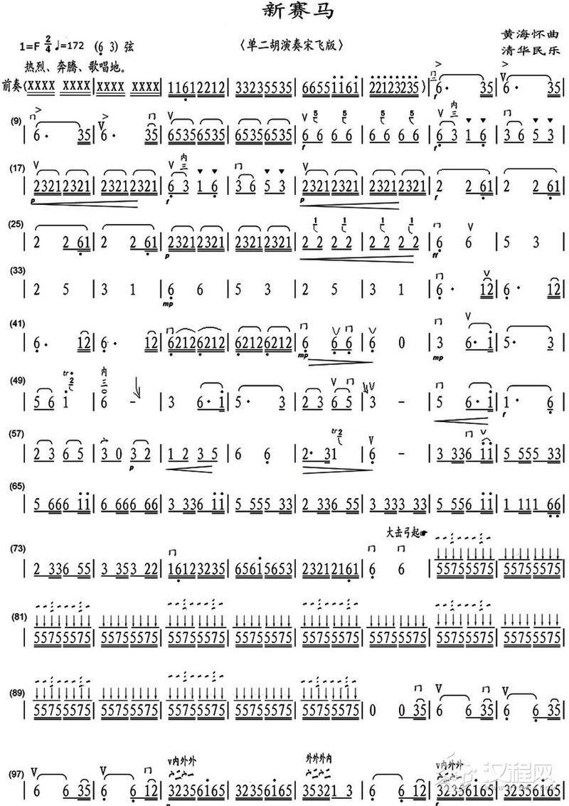 曲谱大全翻身歌(二胡曲)