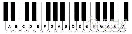 每个音符都有一个名称,音符是用A B C D E F G 七个字母命名的。如下图所示,这七个字母不断的重复来表示更高或更低的音。