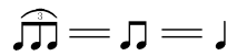 二个音连在一起的八分音符等于一个四分音符的音值长度。三个连在一起的八分三连音的长度与二个八分音符相同。