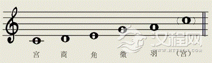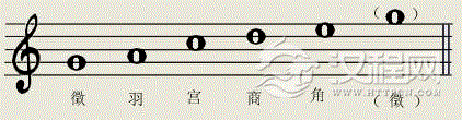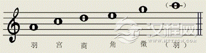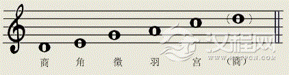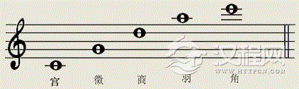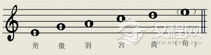 将这五个音移在一个八度内,它们名称的顺序是:宫、商、角、徴、羽。