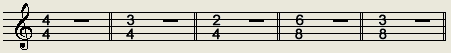 还有一种休止符是表示整小节的休止。(完全小节休止)它们适用于各种拍子。