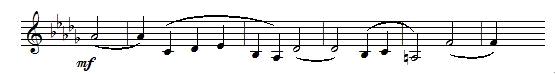 再举一个例子,这是柴科夫斯基(Chaikovsky)的第六"悲怆"交响曲的末乐章主题,以下行音调为主,听上去有如哭泣一般: