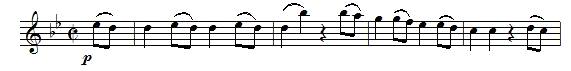 谱例六:莫扎特第40交响曲第一乐章主题: