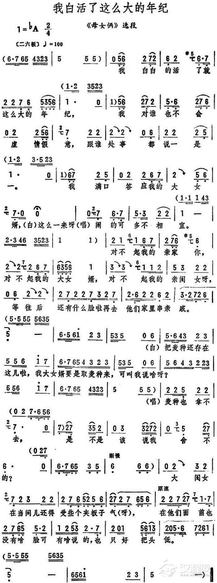 戏曲曲谱为生产把你的心操碎(《母女俩》选段)