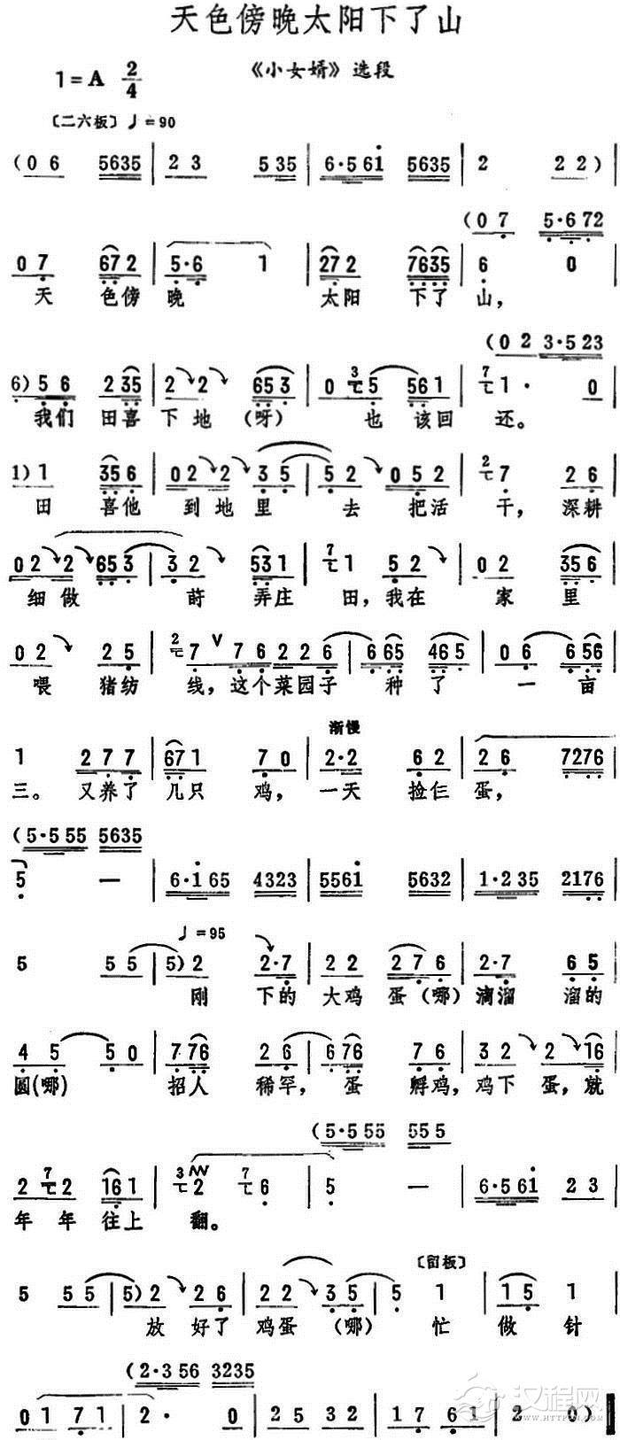 戏曲曲谱太阳出来红似火(《杨三姐告状》选段)