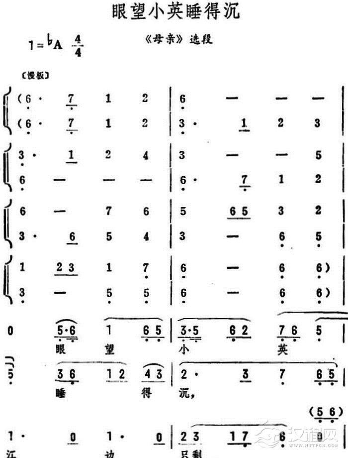 戏曲曲谱月影西斜夜深沉(《母亲》选段)