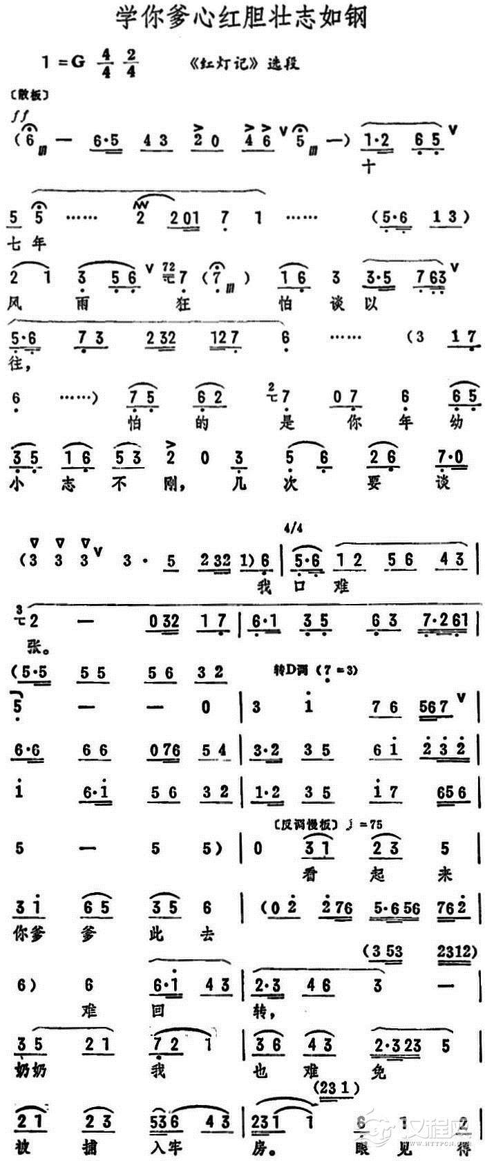 戏曲曲谱血债要用血来偿(《红灯记》选段)
