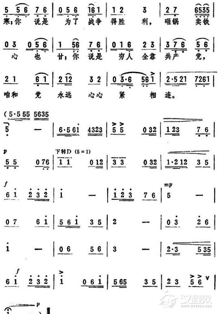 戏曲曲谱为生产把你的心操碎(《母女俩》选段)