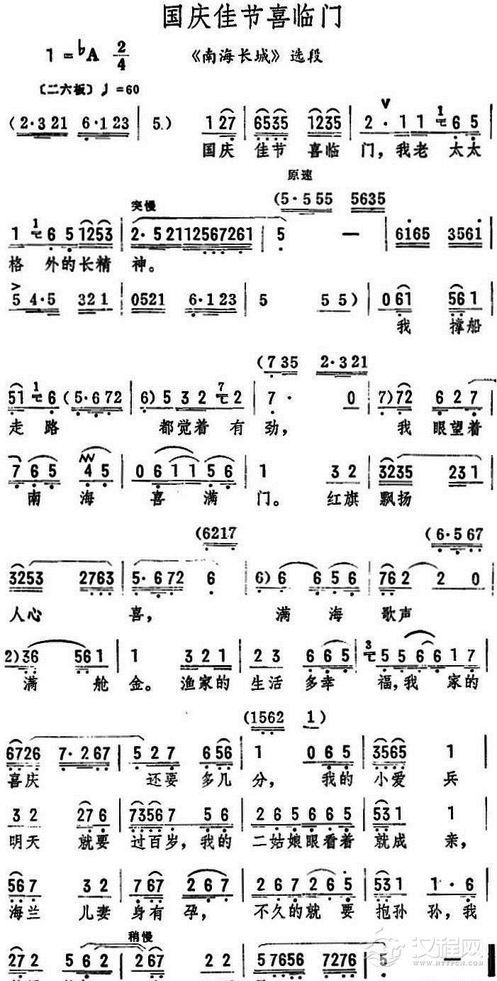 戏曲曲谱永远跟着毛泽东(《南海长城》选段)