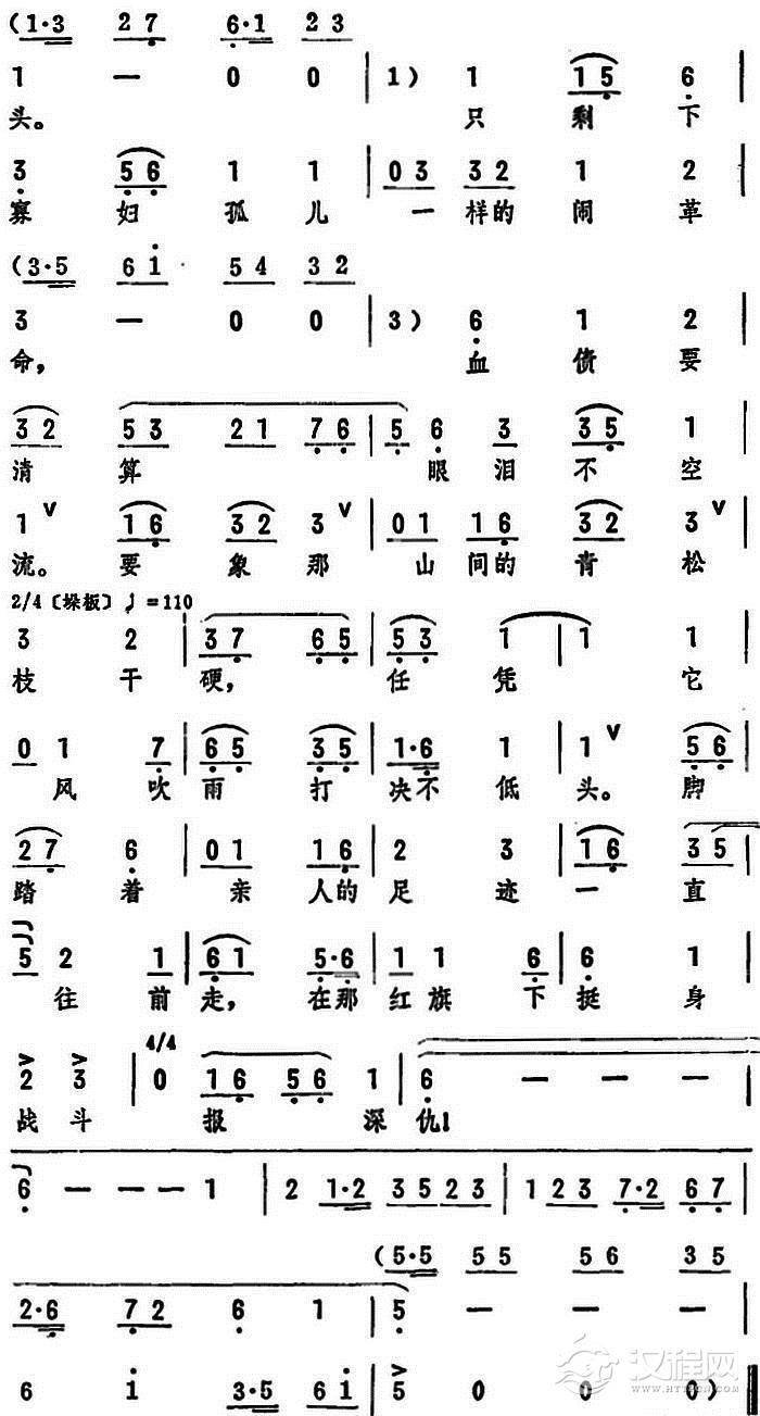 戏曲曲谱恨只恨铁蹄横行残暴日寇(《友谊之歌》选段)