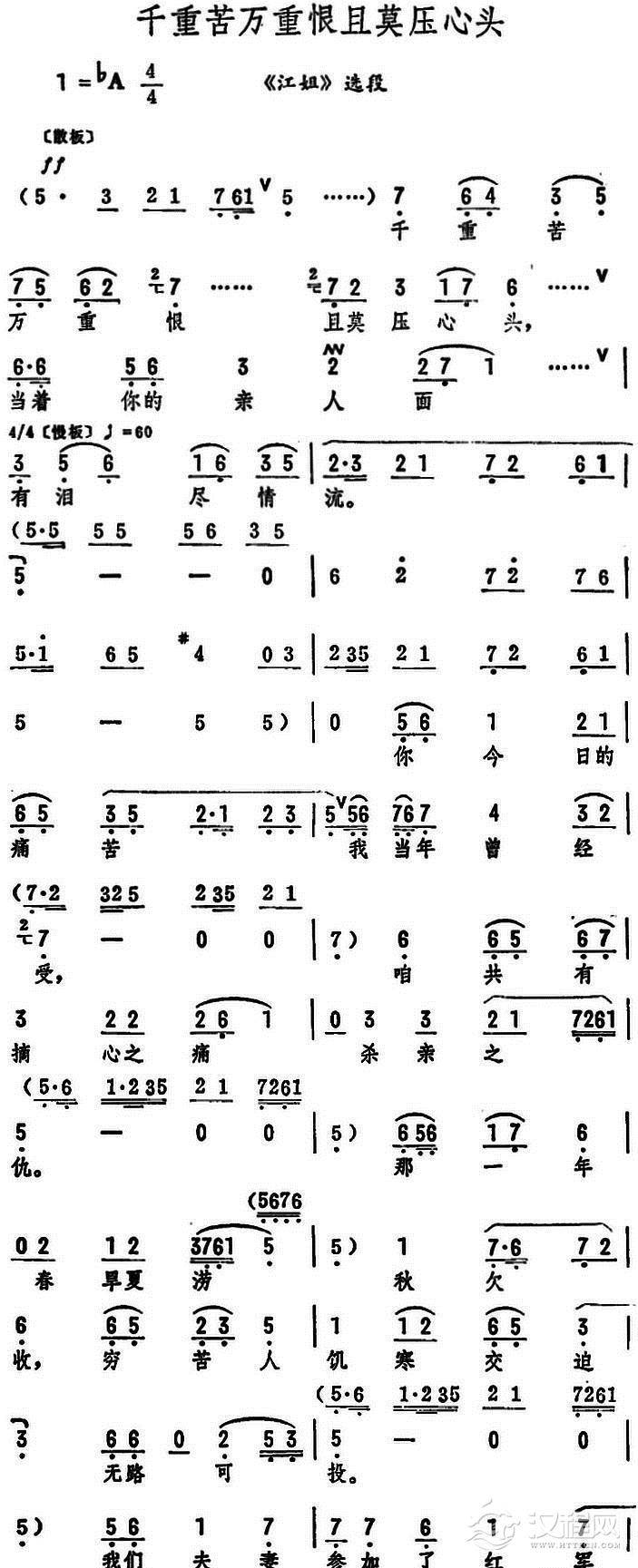 戏曲曲谱劝郎君莫要着急(《杜十娘》选段)