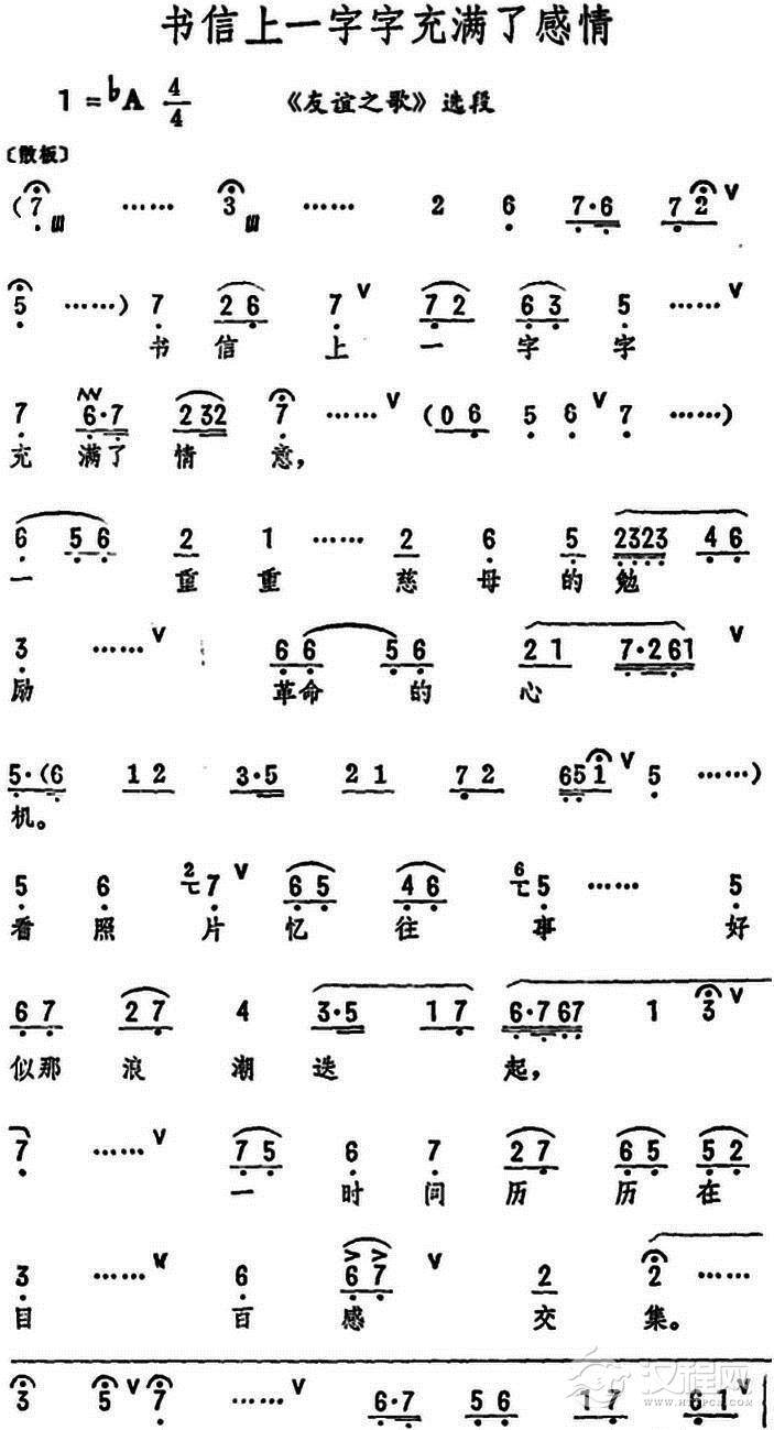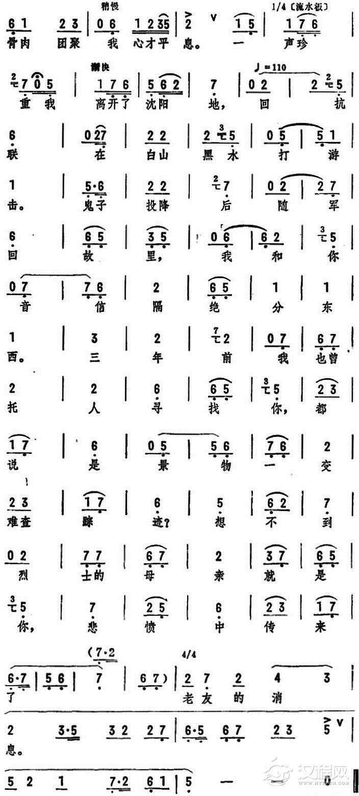 戏曲曲谱我们母女能团聚是你的功劳(《友谊之歌》选段)