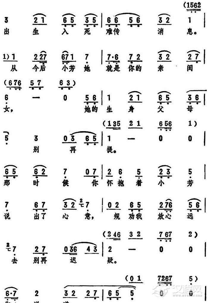 戏曲曲谱小芳她一声声把母亲夸奖(《友谊之歌》选段)