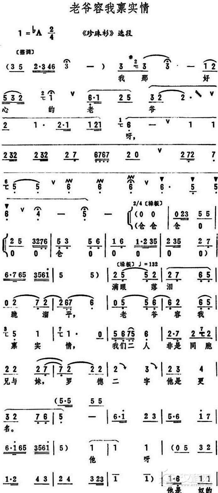 戏曲曲谱满斟酒敬老爷(《珍珠衫》选段)