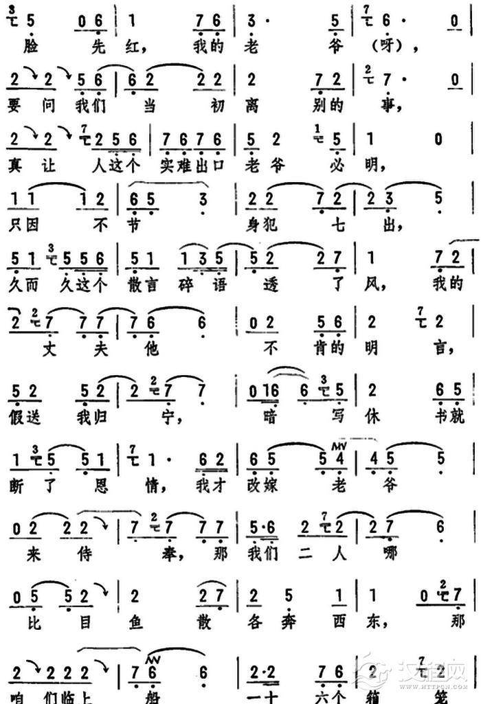 戏曲曲谱劝妈妈不必心伤感(《花魁从良》选段)