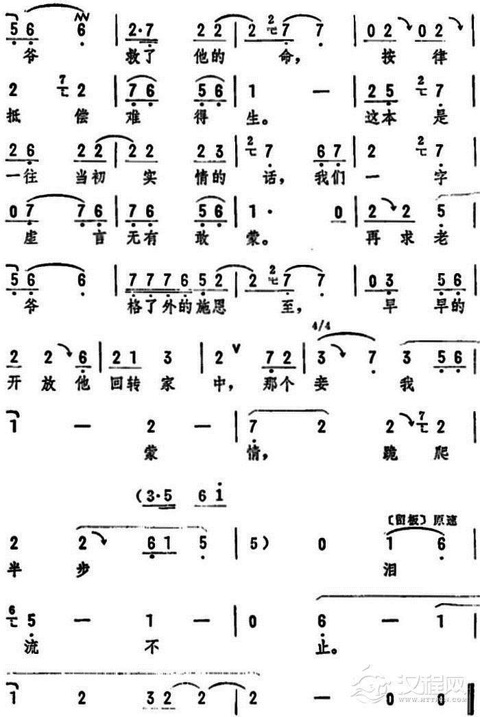 戏曲曲谱来了借粮的刘翠屏(《刘翠屏哭井》选段)