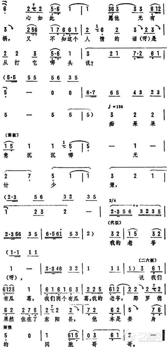 戏曲曲谱劝妈妈不必心伤感(《花魁从良》选段)