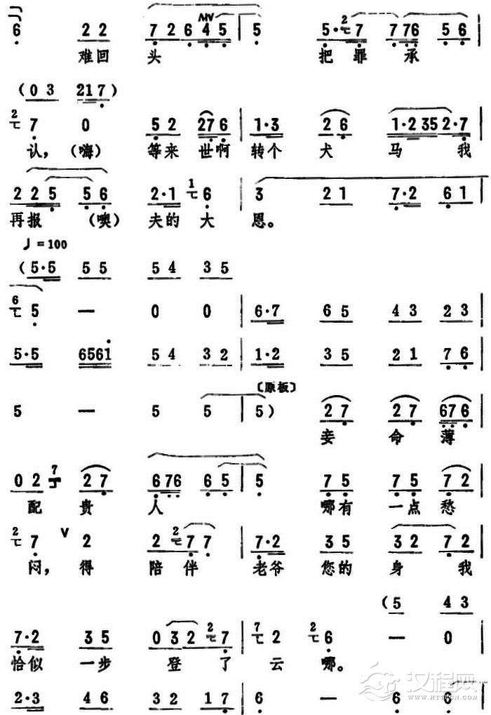 戏曲曲谱劝郎君莫要着急(《杜十娘》选段)