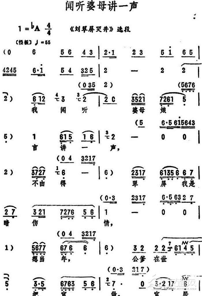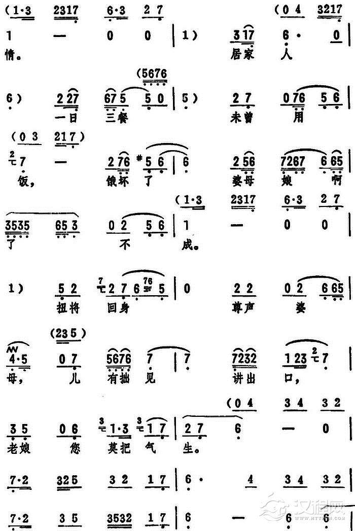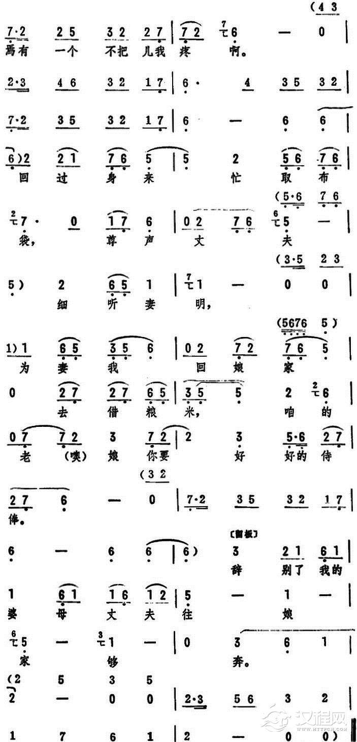戏曲曲谱接过了饭碗说儿多谢(《刘翠屏哭井》选段)