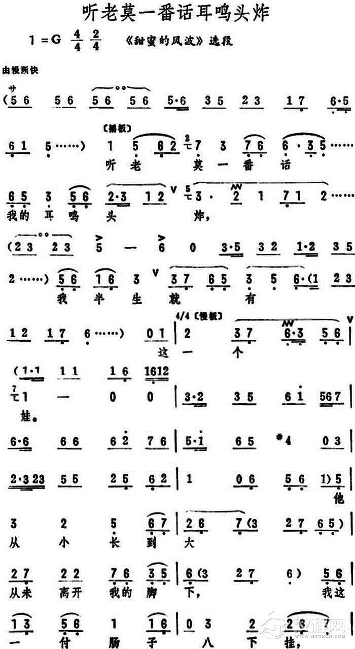 戏曲曲谱想起来从前的事心酸气梗(《甜蜜的风波》选段)
