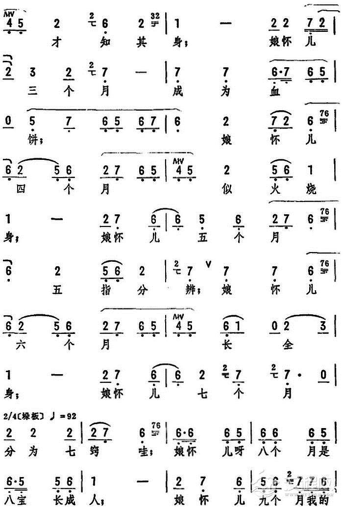 戏曲曲谱我生了大大小小五个娃(《甜蜜的风波》选段)