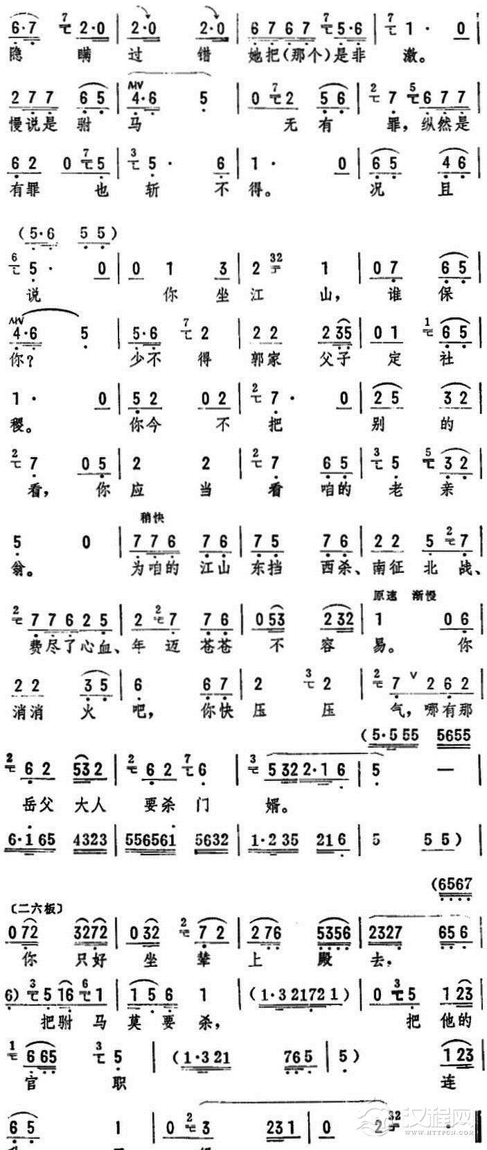 戏曲曲谱劝皇儿你莫要哭哭啼啼(《打金枝》选段)