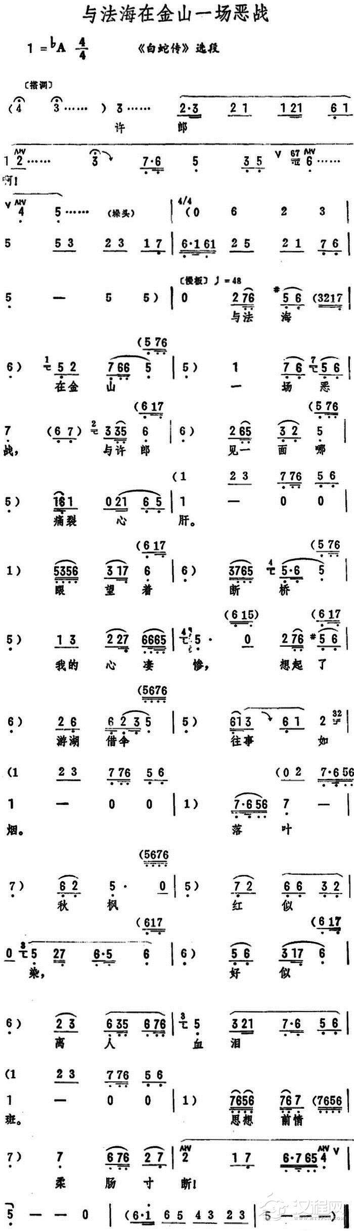 戏曲曲谱恨法海他把好夫妻活活拆散(《白蛇传》选段)