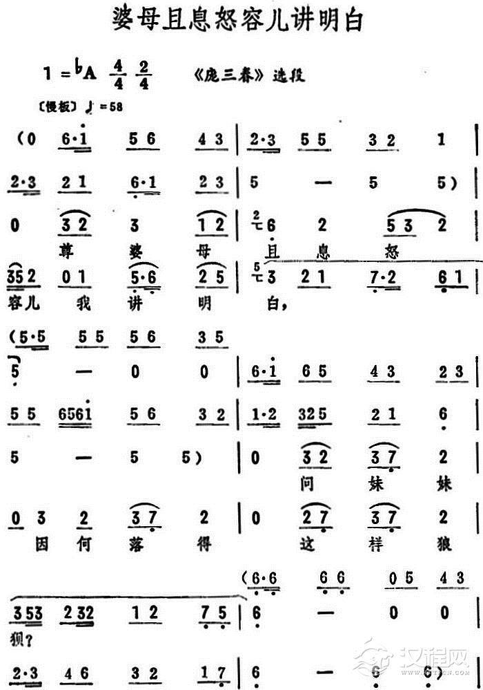 戏曲曲谱一句话恼得我火燃双鬓(筱俊亭演唱版)(《杨门女将》选段)