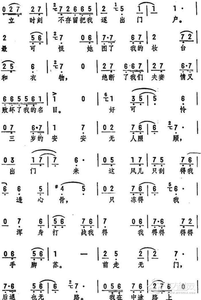戏曲曲谱怀抱着娇儿泪纷纷(《摔子劝夫》选段)