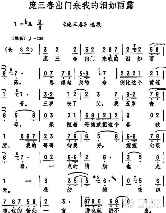 戏曲曲谱公爹辞世如塌天(《庞三春》选段)